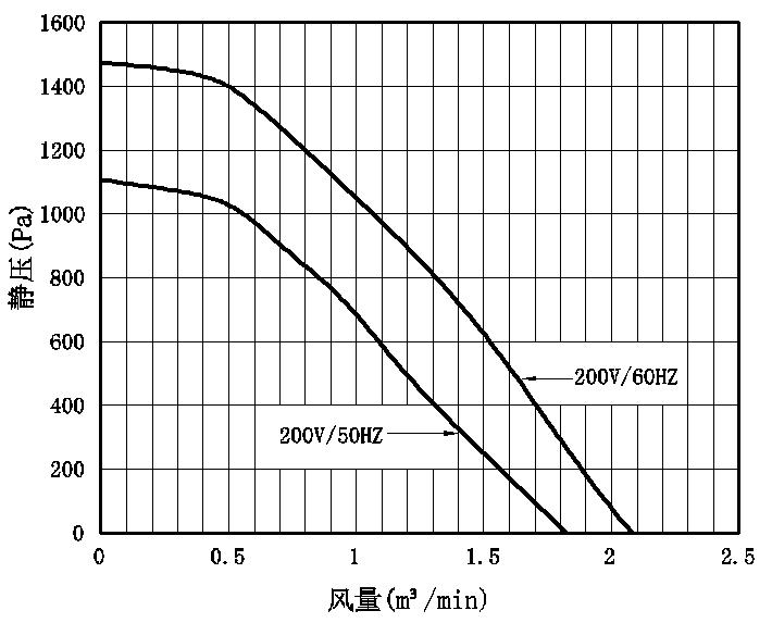 型號 電壓 相數(shù) 頻率 輸入電流 輸入功率 轉(zhuǎn)速 風(fēng)量 靜壓 噪音 電容 凈重